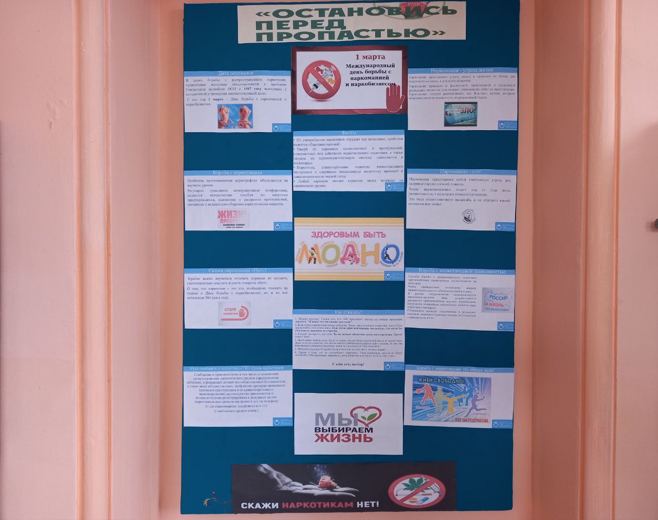 Информационный стенд предоставляет каждому посетителю важную информацию: факты о вреде наркотиков, признаки развития зависимости и контакты служб помощи. Эти материалы способствуют осознанному отношению к угрозе и своевременной реакции.