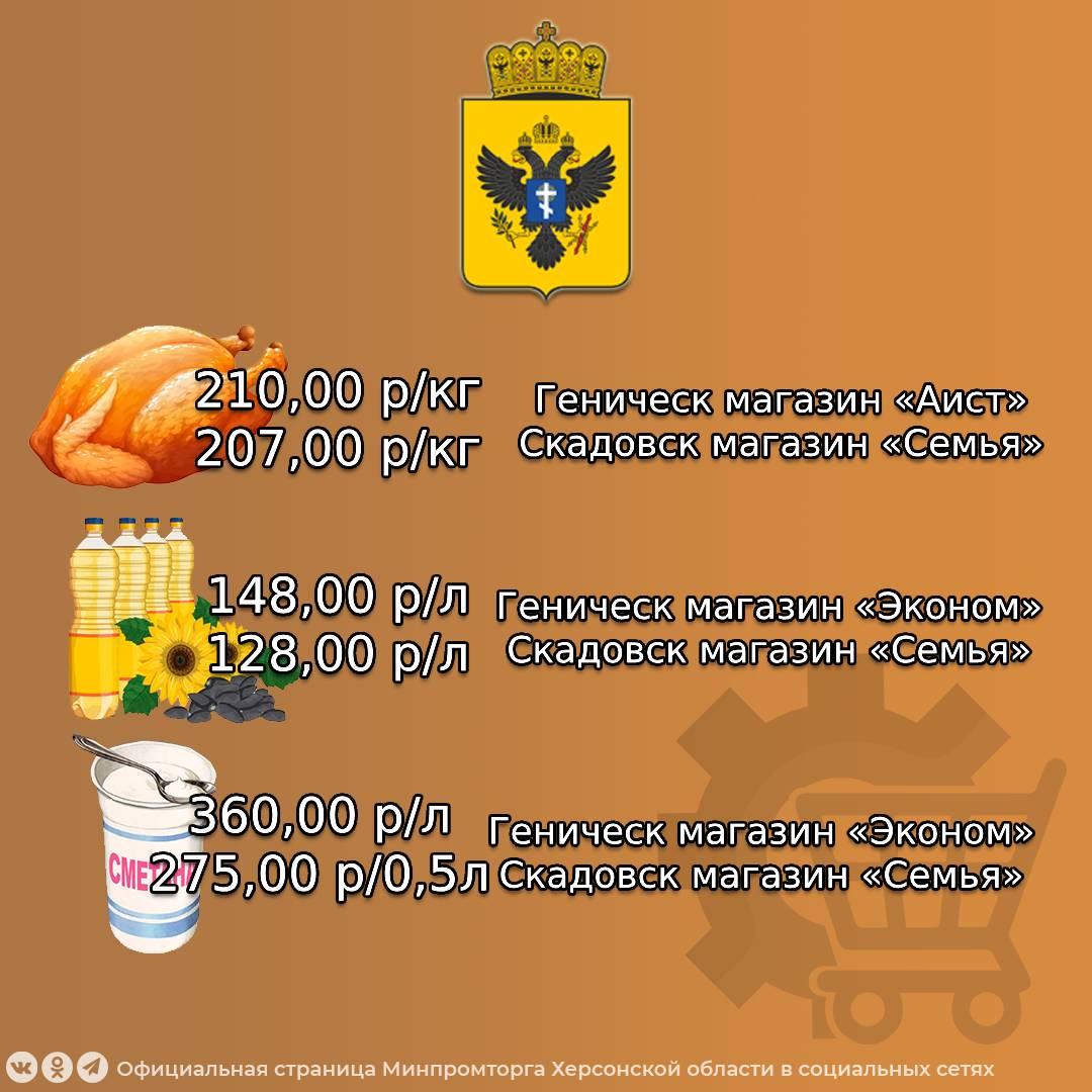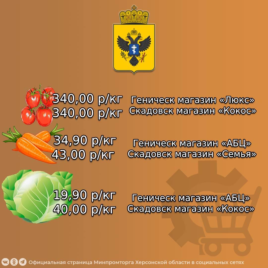 Минимальные цены на продукты «Борщевого набора» в магазинах Херсонской области