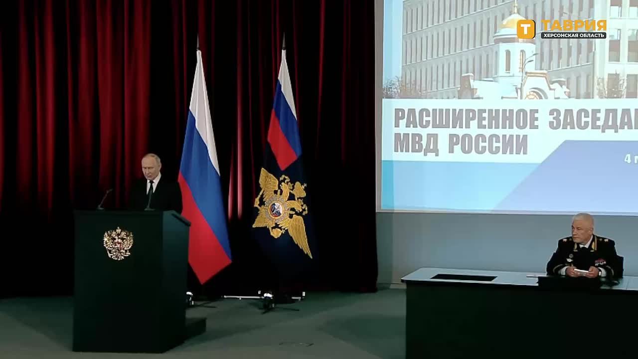 Владимир Путин подчеркнул, что именно благодаря мужеству и профессионализму сотрудников МВД на Донбассе, в Новороссии и приграничных регионах обеспечиваются общественный порядок и защита прав жителей.