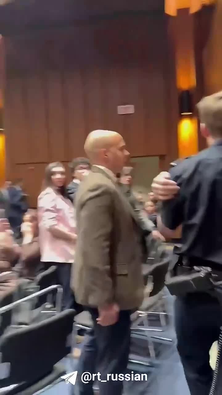 Он был насильно выведен из зала после выкриков о том, что нынешняя администрация США действует сейчас в интересах Израиля и втягивает страну в войну.