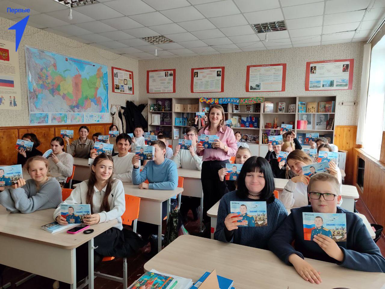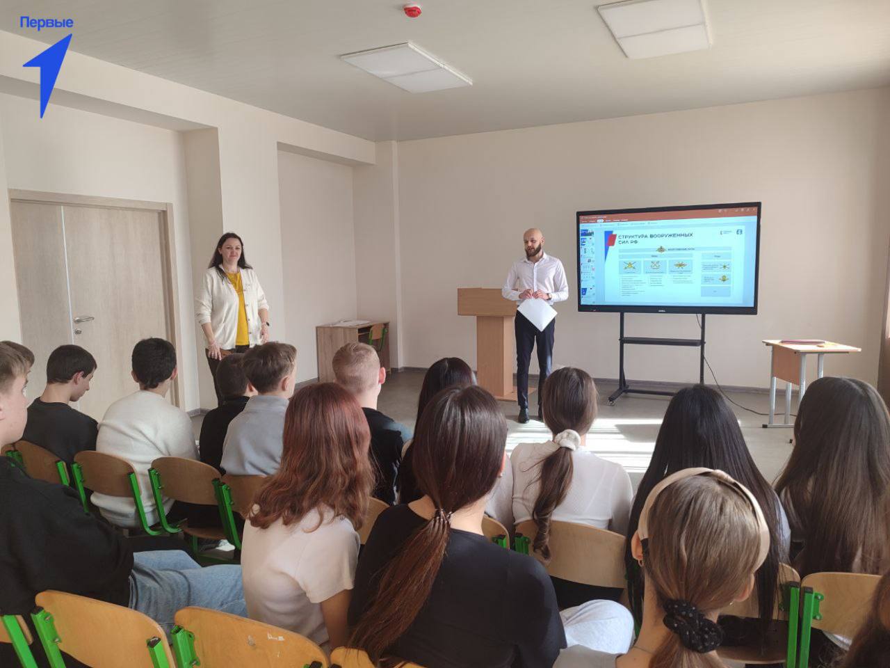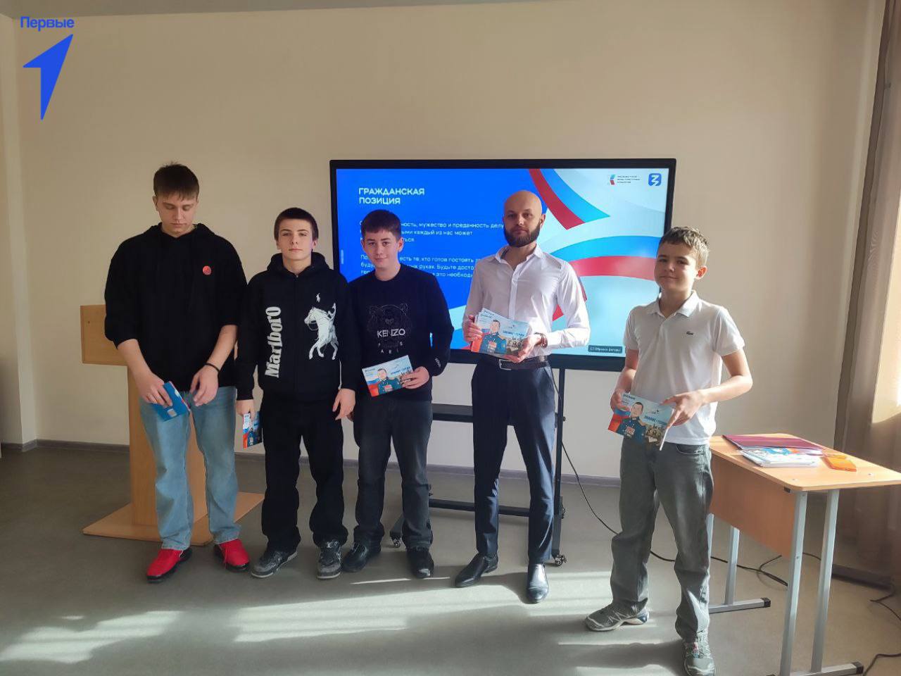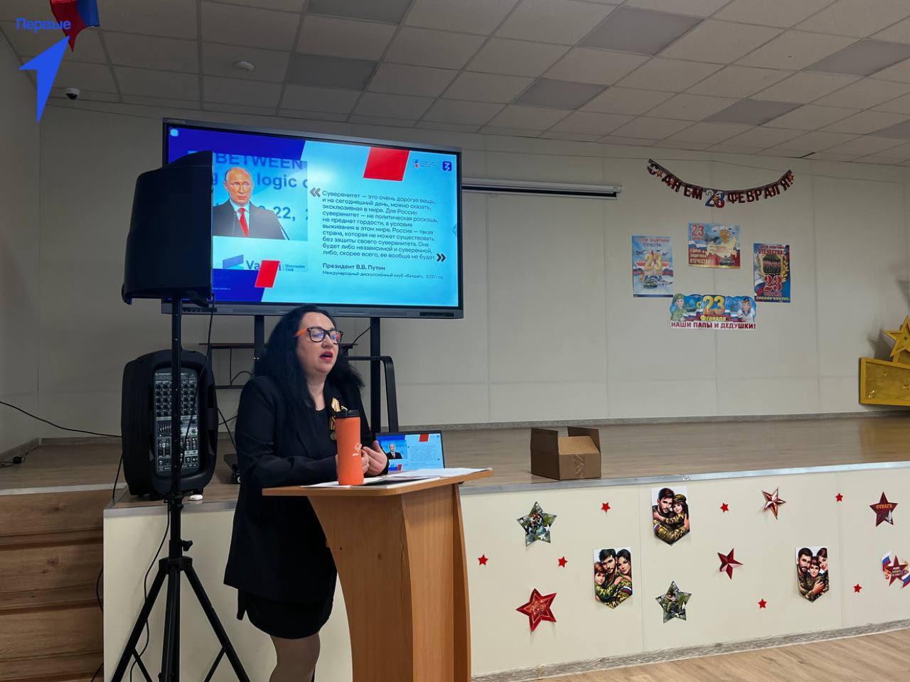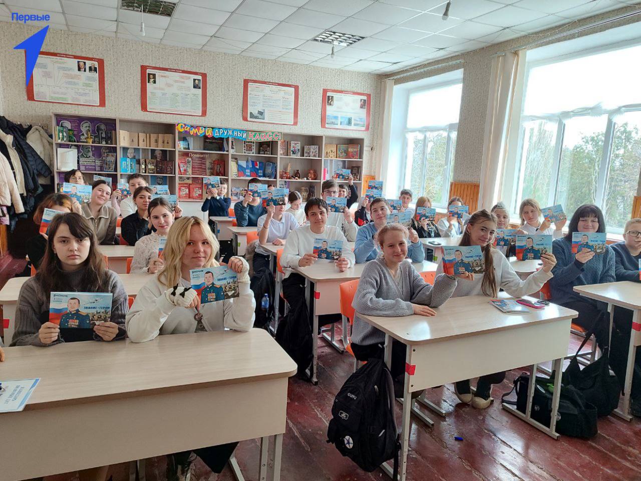 В рамках встреч школьникам представили материал от Российского общества «Знание» — сборник «Герои на защите Отечества». Ребята узнали о подвигах защитников страны, их мужестве, ответственности и служении Родине. Занятия прошли в интерактивном формате: школьники услышали истории героев, задавали вопросы и делились своими мыслями о том, что значит быть патриотом.