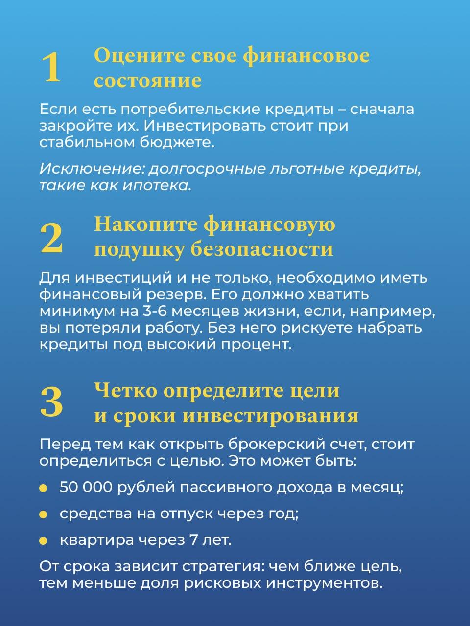 Для успешного и безопасного старта в инвестициях необходимо соблюдать некоторые принципы. При этом необходимо постоянно расширять свои знания, интересоваться рынком, изучать специализированную литературу, смотреть лекции и читать бизнес-новости.