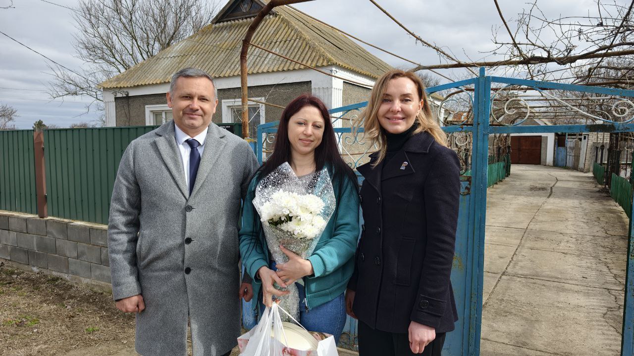 Вместе с председателем Совета депутатов Новотроицкого округа Алексеем Козубским передали цветы и подарки от партии.