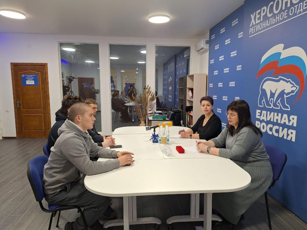 В штабе регионального отделения партии «Единая Россия» в Геническе состоялся Единый день приёма абитуриентов. Приём провели секретарь местного отделения партии, глава Генического округа Юлия Семякина и ректор Херсонского технического университета Галина Райко.