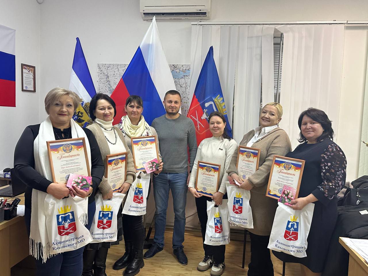 От имени главы Каховского округа Павла Филипчука активисток территориального общественного самоуправления, женщин-начальников ТО, победителей первого конкурса фонда Президентских грантов в 2026 года поздравили с приближающимся Международным женским днем.