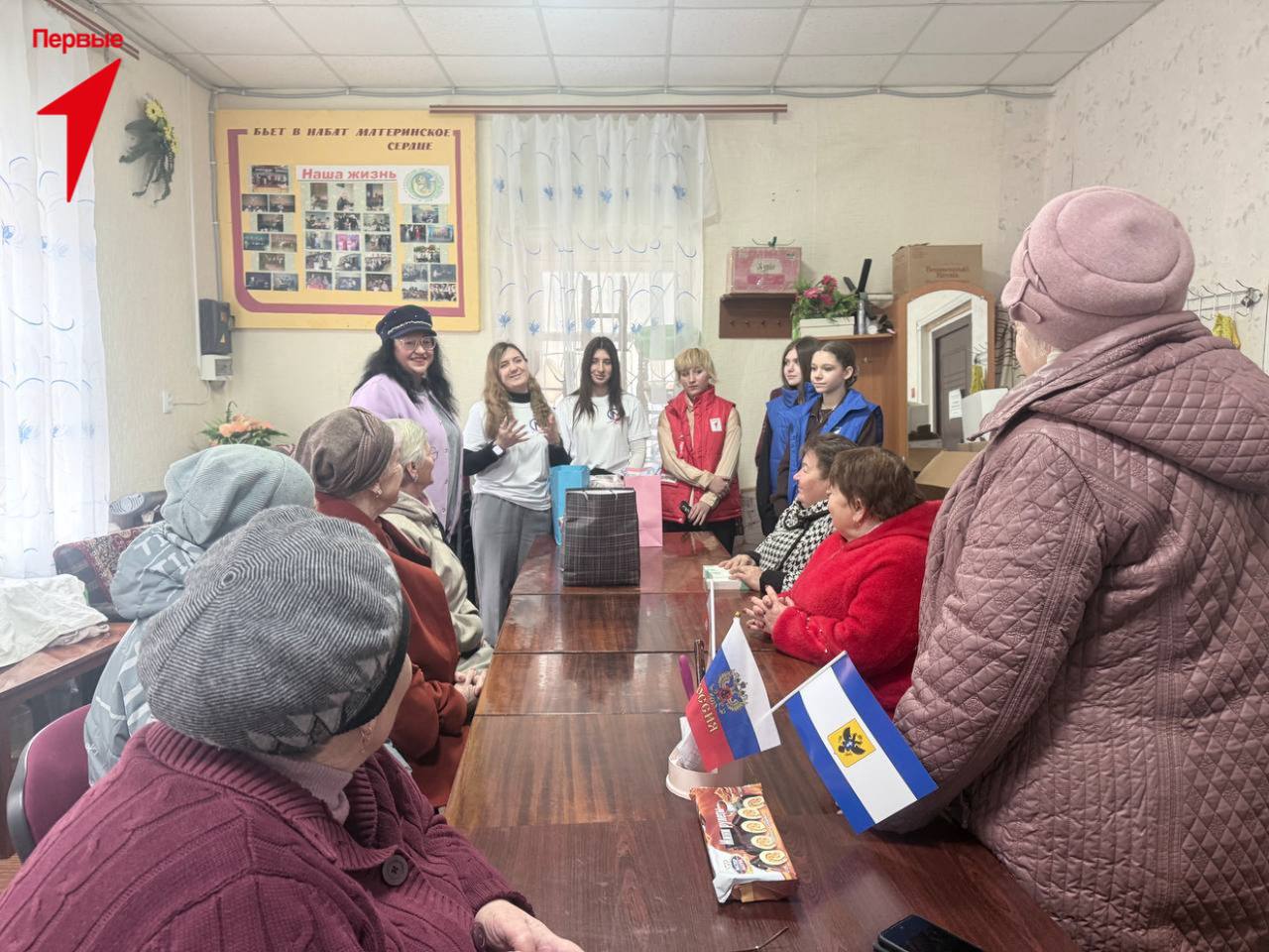 Для ветеранов подготовили и передали подарки: сладости, косметические наборы и открытки с поздравлениями. Ребята лично поблагодарили старшее поколение и пожелали здоровья, тепла и хорошего настроения. Особенным моментом встречи стал музыкальный подарок: одна из активисток Движения Первых исполнила для ветеранов песню «Дарите женщинам цветы».