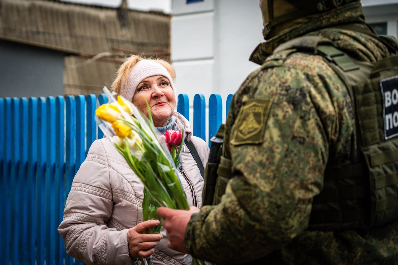 В рамках акции «Вам, Любимые!» в честь Международного женского дня представители регионального гуманитарного штаба #МЫВМЕСТЕ совместно с военной полицией поздравили женщин с праздником.