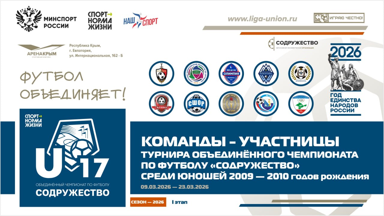 Команды-участницы I этапа турнира Объединённого чемпионата по футболу "Содружество" среди юношей 2009-2010 годов рождения (U-17)