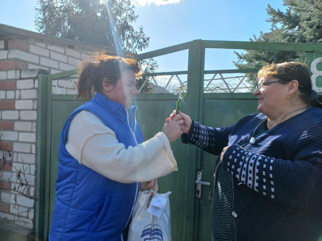 Активисты ТОС «Мечта» города Каховка поздравили маломобильных женщин с 8 Марта