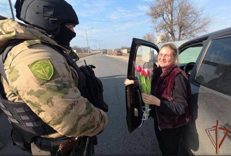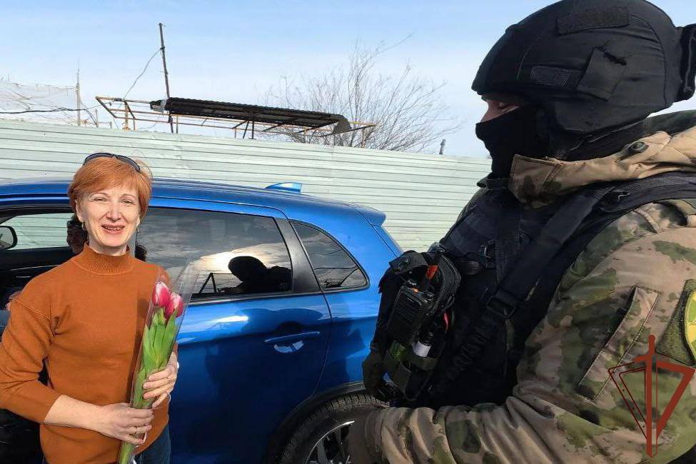 Росгвардейцы поздравили с праздником жительниц населенных пунктов Херсонской и Запорожской областей, ЛНР и ДНР – подарили яркие букеты весенних тюльпанов, искренние поздравления и самые теплые пожелания крепкого здоровья, мира, счастья и благополучия.