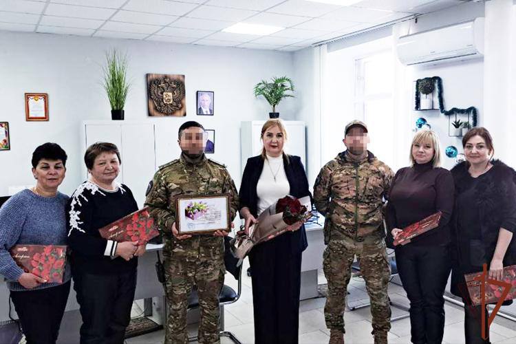 Военнослужащие и сотрудники Росгвардии, выполняющие задачи на территории новых российских регионов, провели праздничные мероприятия и поздравили женщин.
