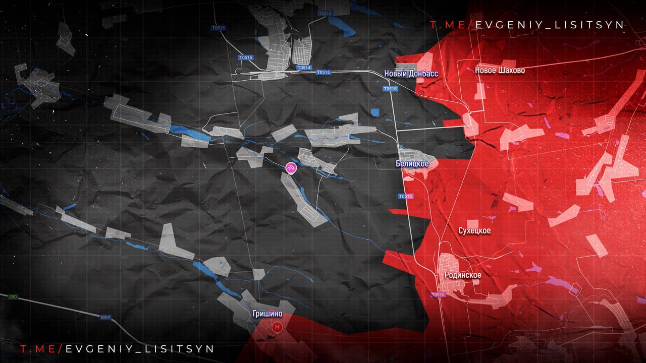 ВС РФ развивают успех в Гришино. Идут встречные бои у Белицкого, Нового Донбасса и Вольного. Бои на подступах к Кучеров Яру. Наши закрепились на высотах юго-восточнее Новопавловки.