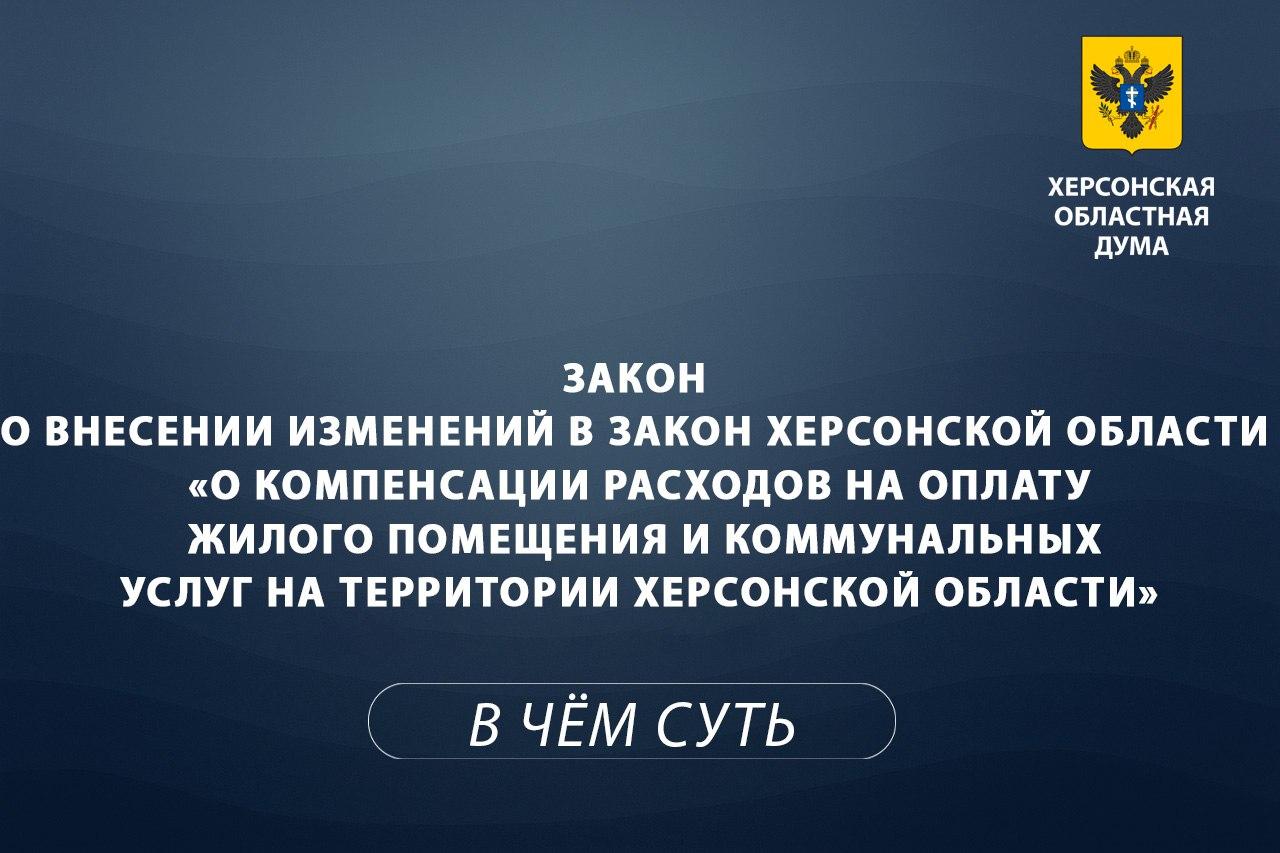 Херсонской областной Думой принят Закон Херсонской области от 04.03.2026 № 4-ЗХО «О внесении изменений в Закон «О компенсации расходов на оплату жилого помещения и коммунальных услуг на территории Херсонской области».