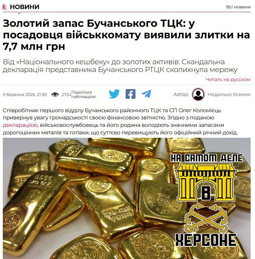 В декларации сотрудника ТЦК из Бучи обнаружили внушительный золотой запас.