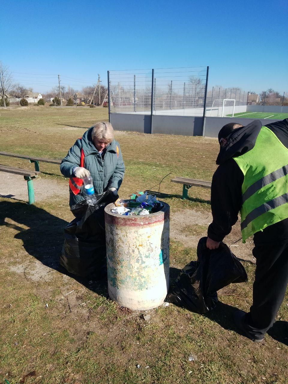 с. Стрелковое: Уборка мусора и чистка урн в центральной части села, на остановках, детской площадке и улицах Центральная и Гагарина.
