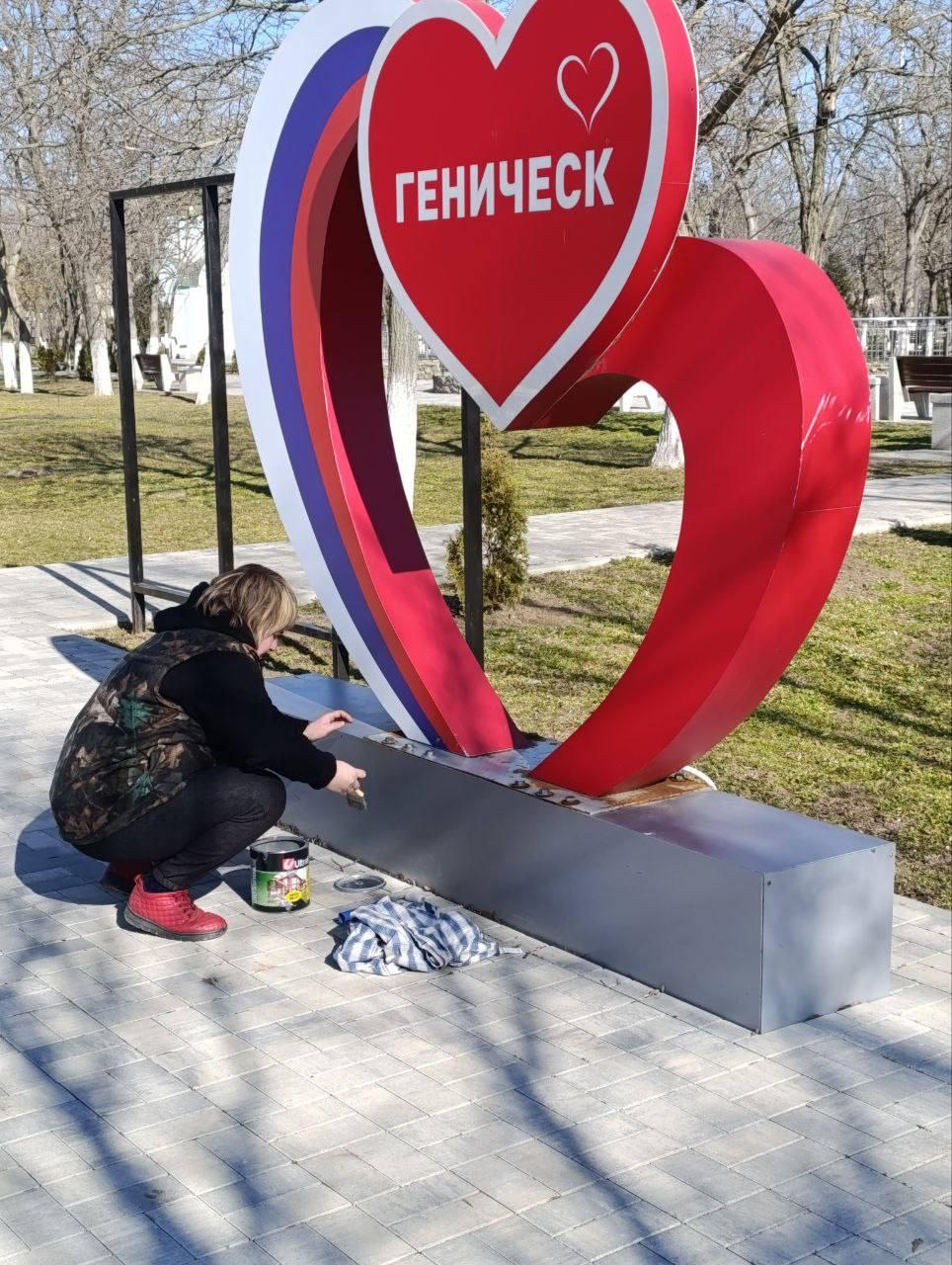 пгт. Новоалексеевка: Санитарная уборка у памятника «Родина-Мать», на детской площадке и контейнерных площадках. Заменены государственные флаги на ул. Дружбы Народов.