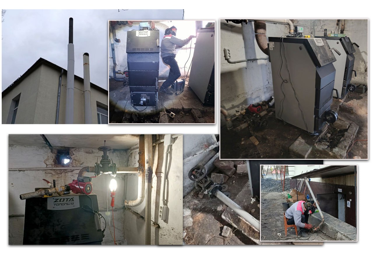 Была осуществлена замена двух твердотопливных котлов и двух циркуляционных насосов.