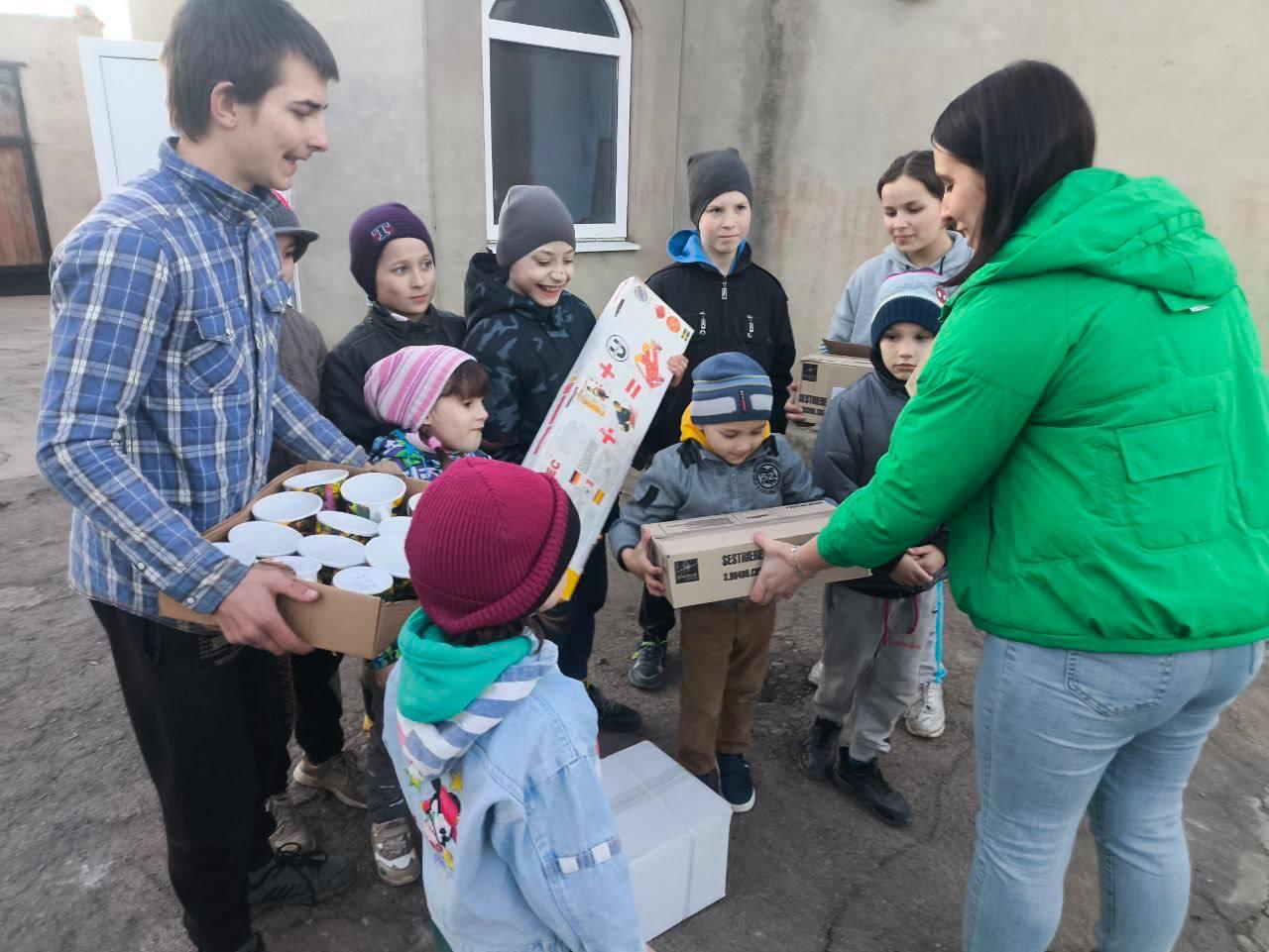 Наталья Каган воспитывает 13 детей. Многодетной семье передали детские игрушки, посуду и новый самокат, который вызвал особую радость у ребят.