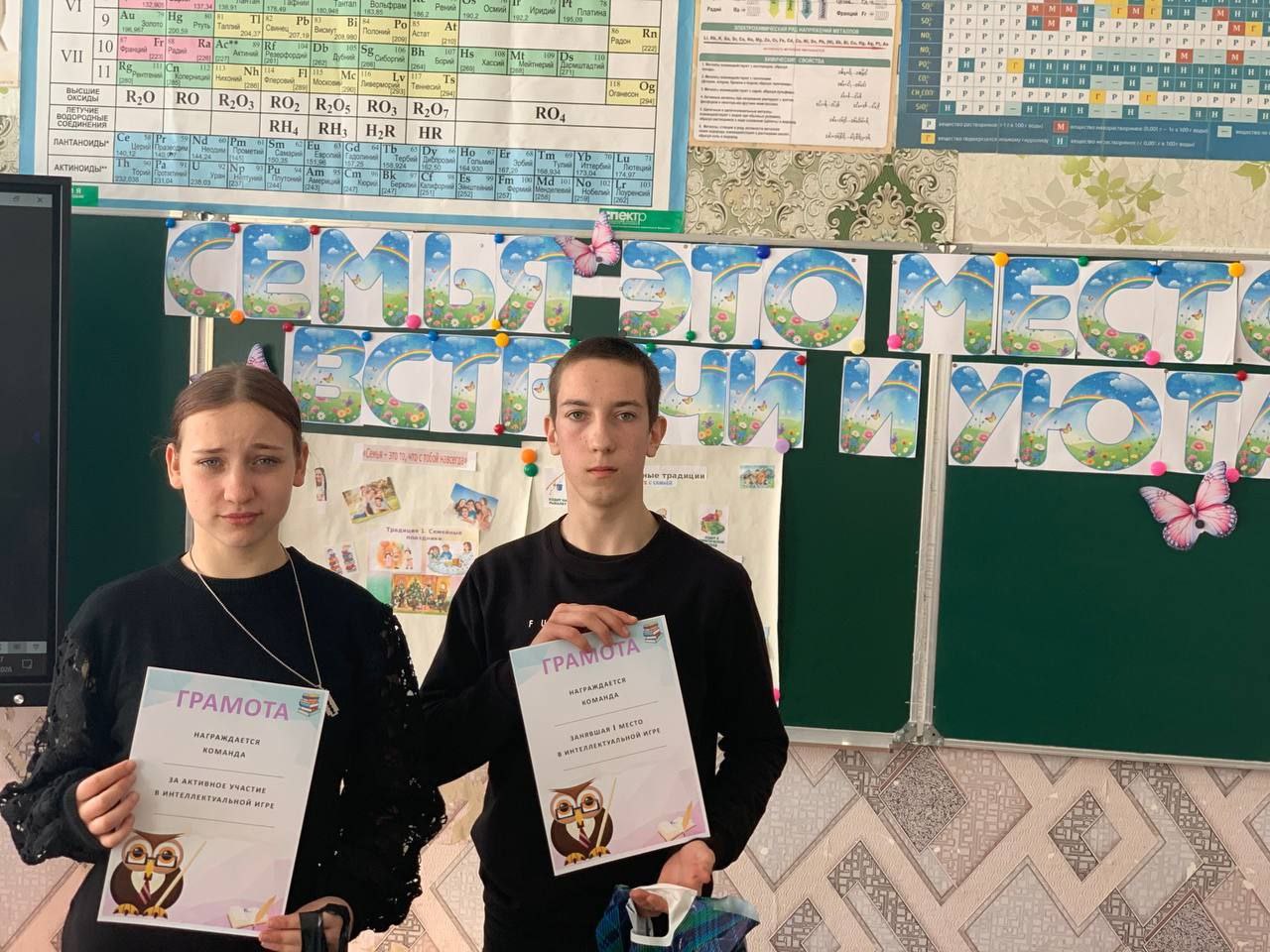 По итогам урока Елена Михайловна Щербакова вручила сладкие призы. Победители и участники были награждены почётными грамотами.