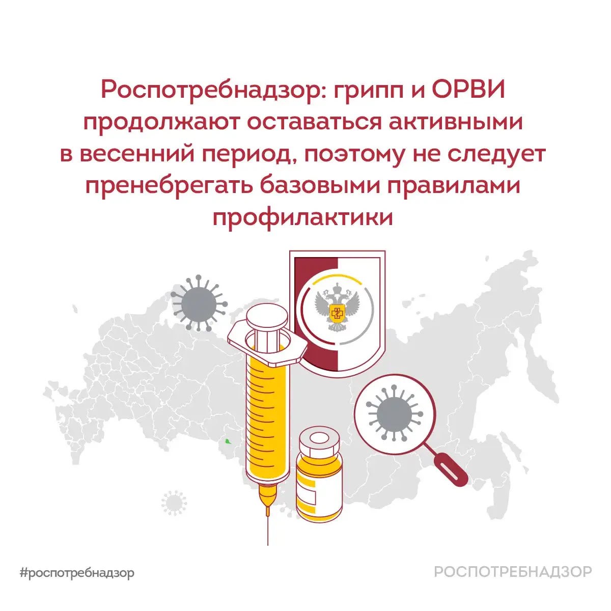 Все респираторные вирусы циркулируют круглый год, но их активность традиционно возрастает в осенне-зимний и весенний периоды, что и является сезонным подъемом заболеваемости. Несмотря на снижение доли вирусов гриппа по данным лабораторного мониторинга, общая заболеваемость остается на значительном уровне. В этих условиях не следует пренебрегать базовыми мерами профилактики, которые остаются действенным инструментом защиты здоровья: