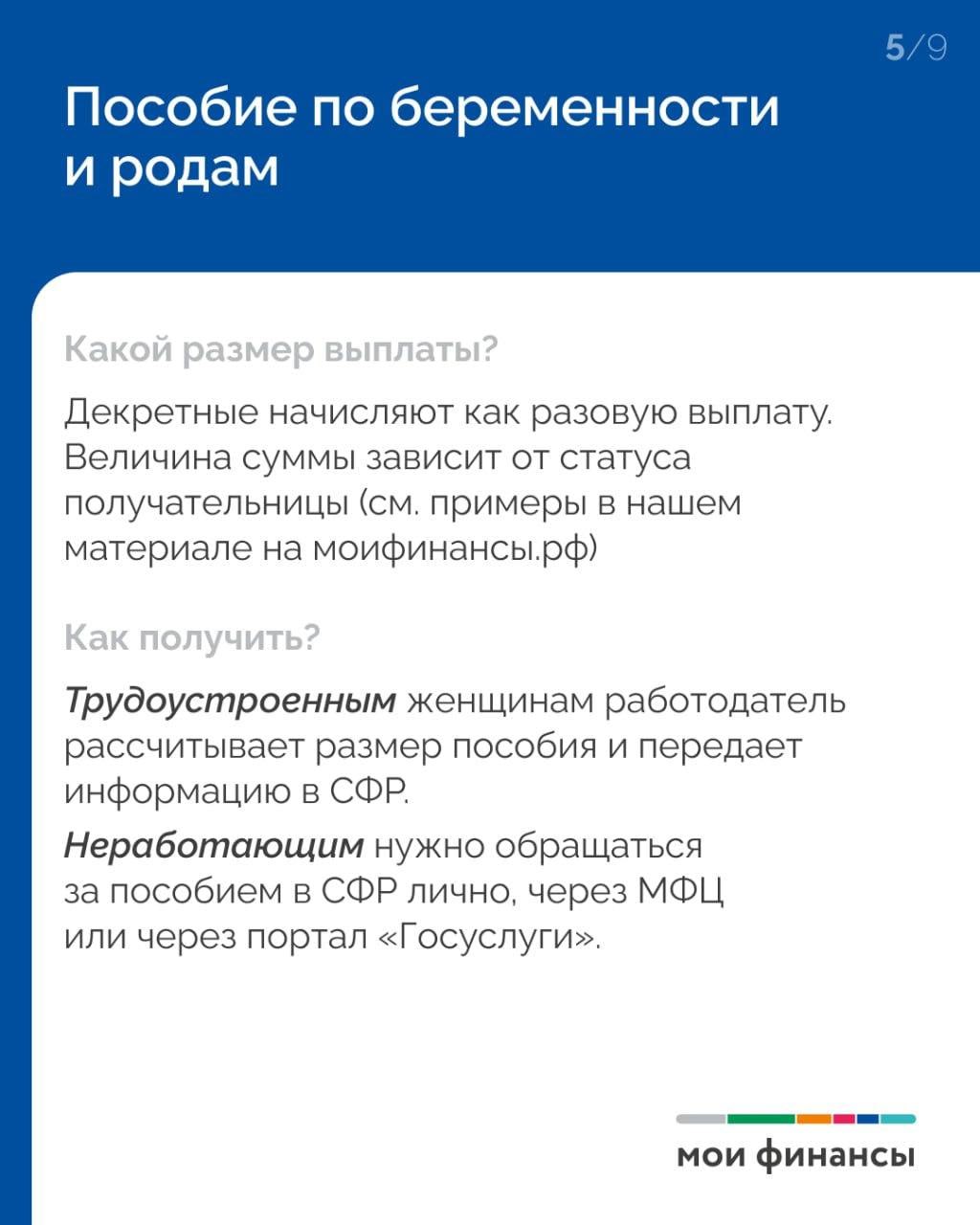Пособия бывают разовые и ежемесячные, федеральные и региональные, адресные или общие: пособие по беременности и родам разовое и предоставляется работающим женщинам и студенткам-очницам, то же самое касается пособия по уходу за ребенком до полутора лет, адресные выплаты назначают лишь семьям с невысоким доходом. Для каких-то выплат нужно вставать на учет, для других требуется подача заявления, в ряде случаев пособия назначаются автоматически.