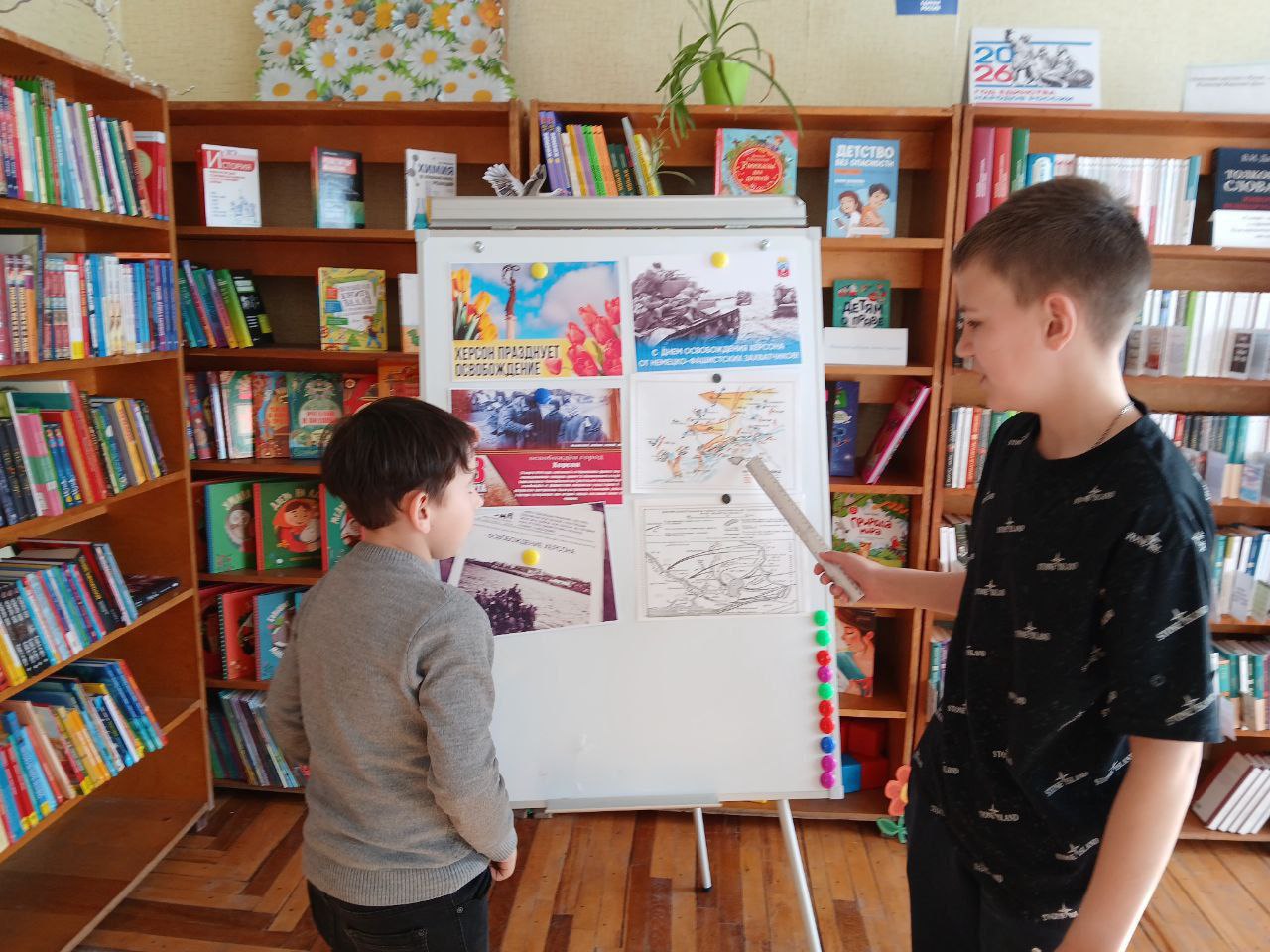 В сельской библиотеки с. Хлебодаровка прошел час истории «Освобождение Херсона. Весна 1944 года». Юные читатели узнали о героизме советских солдат и выдающихся командирах — полковниках Василии Маргелове и Александре Дорофееве. Именно под их командованием бойцы 49-й гвардейской и 295-й стрелковой дивизий в ночь на 13 марта совершили легендарный подвиг: форсировали Днепр и закрепились на рубежах, открыв путь к победе. За этот подвиг оба офицера были удостоены звания Героя Советского Союза.