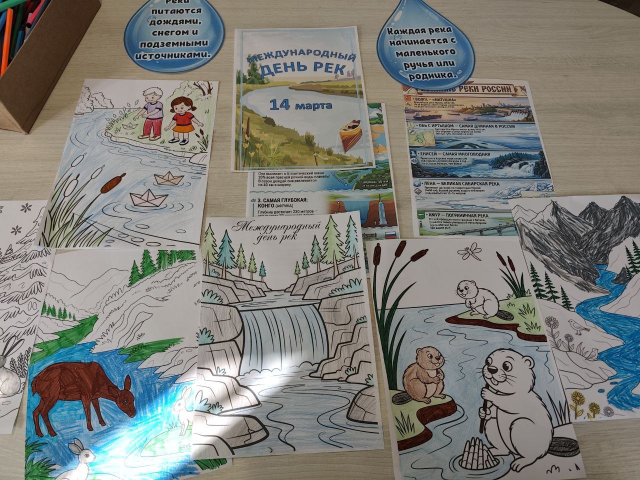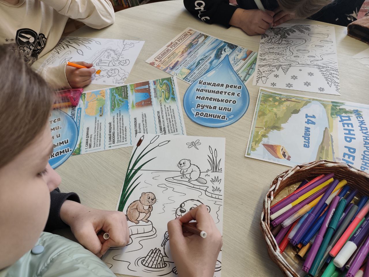 Дети обсудили проблему сохранения водных ресурсов и значимость бережного отношения к речным экосистемам. В завершение мероприятия юные художники рисовали реки и озера.