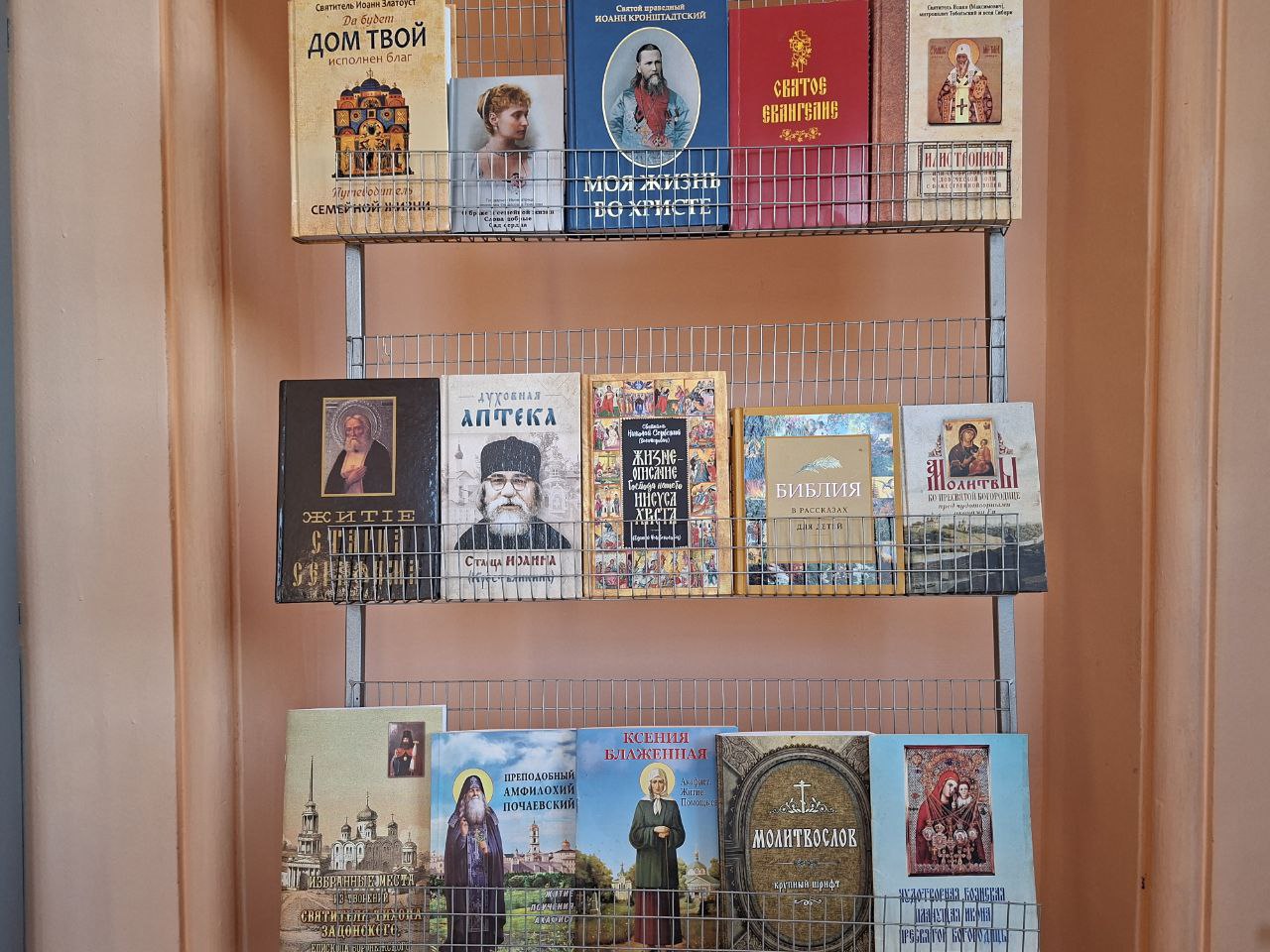 Среди ключевых экспонатов – православные книги с глубокими наставлениями, красочно иллюстрированная «Библия в рассказах для детей», а также молитвословы для ежедневной духовной опоры.