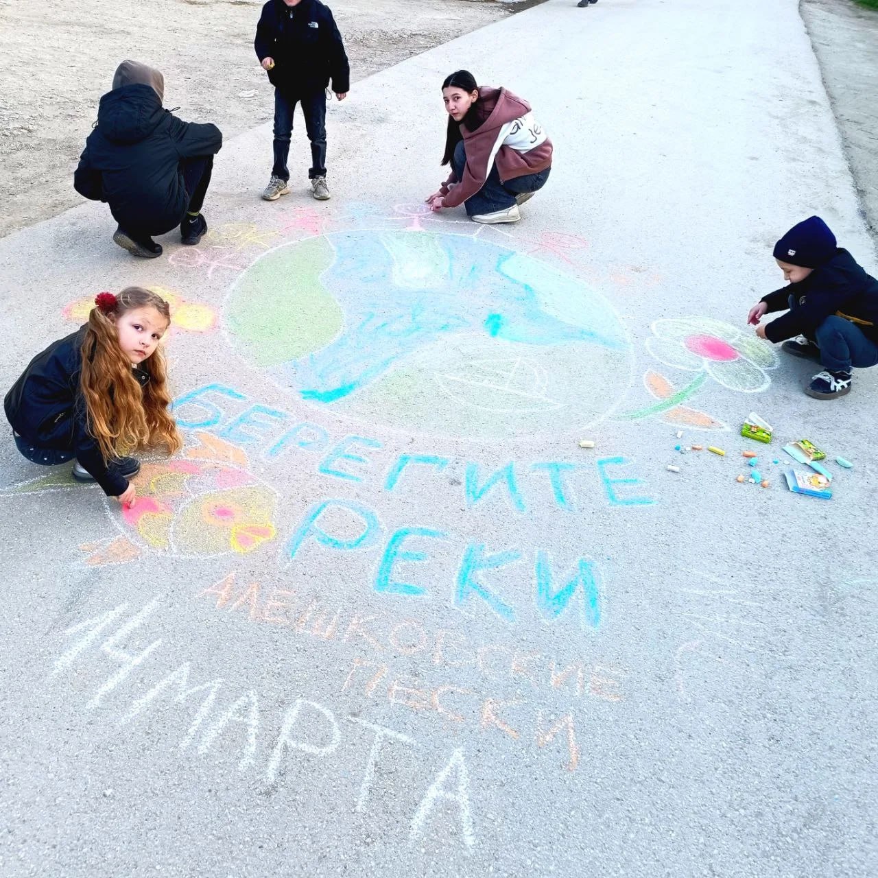 После познавательной беседы участники перешли к творческой части — рисованию на асфальте. Через рисунки ребята смогли выразить свое видение чистой планеты и важности сохранения рек. Сотрудники парка также ответили на многочисленные вопросы детей, помогая им глубже понять экологические проблемы и пути их решения.