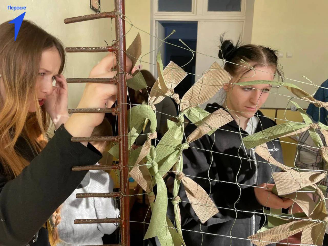 Первые Нижнеторгаивской школы плетут маскировочные сети