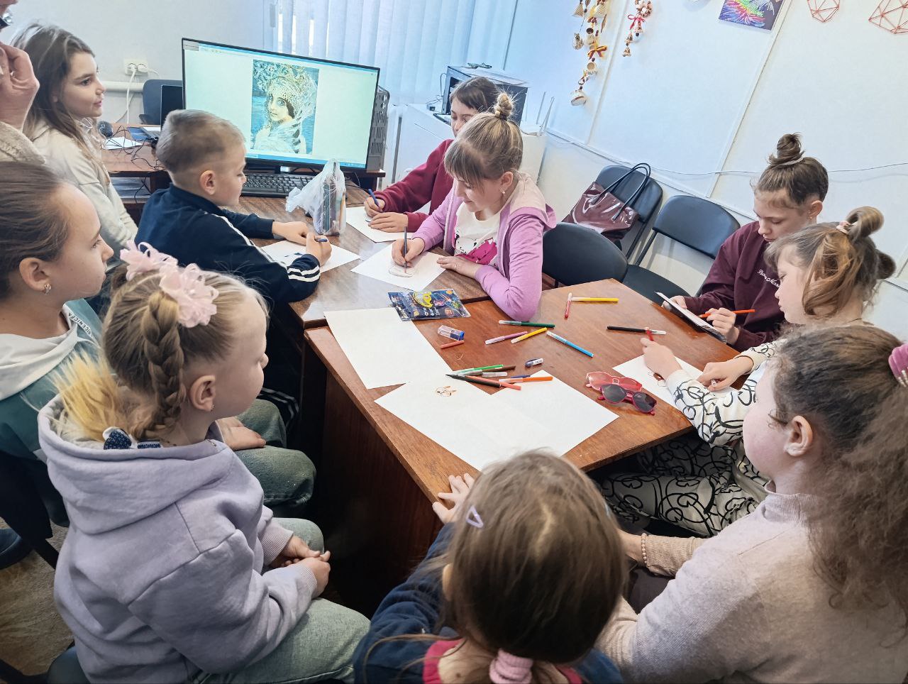 В рамках познавательного часа гости продемонстрировали свои художественные таланты, создавая авторские рисунки на основе цифровых шаблонов, вдохновленных произведениями Михаила Александровича.