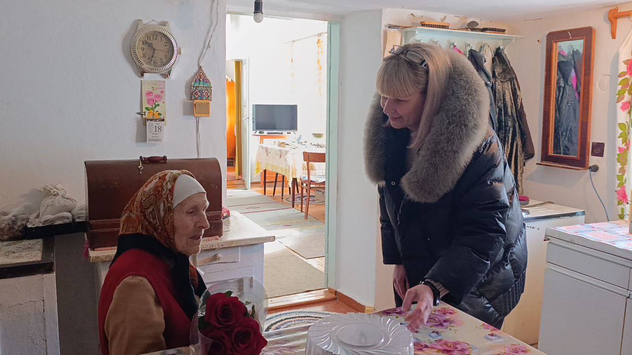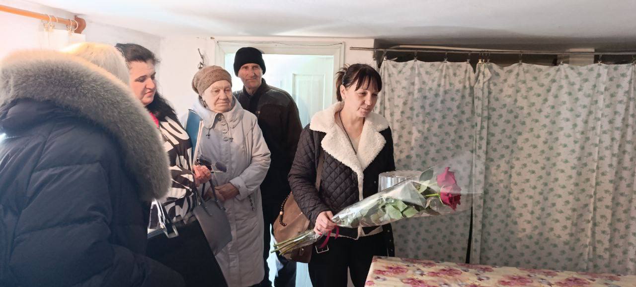 Председатель Совета депутатов Генического муниципального округа Херсонской области Наталья Белик совместно с представителями ГКУ «Управление труда и социальной политики Генического муниципального округа» поздравили с юбилеем жительницу с. Геническая Горка Генического МО.