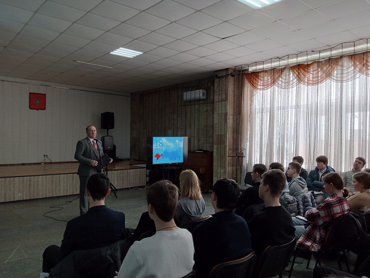 17 марта для учащихся 9–11 классов Генической школы № 1 состоялся тематический информационный час, приуроченный к значимой исторической дате – Дню воссоединения Крыма с Российской Федерацией.