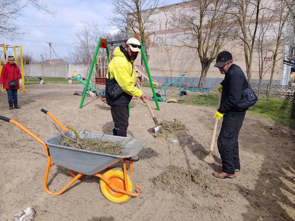 На этой неделе коммунальщики провели уборку в Днепрянах: привели в порядок детскую площадку и парковую зону.