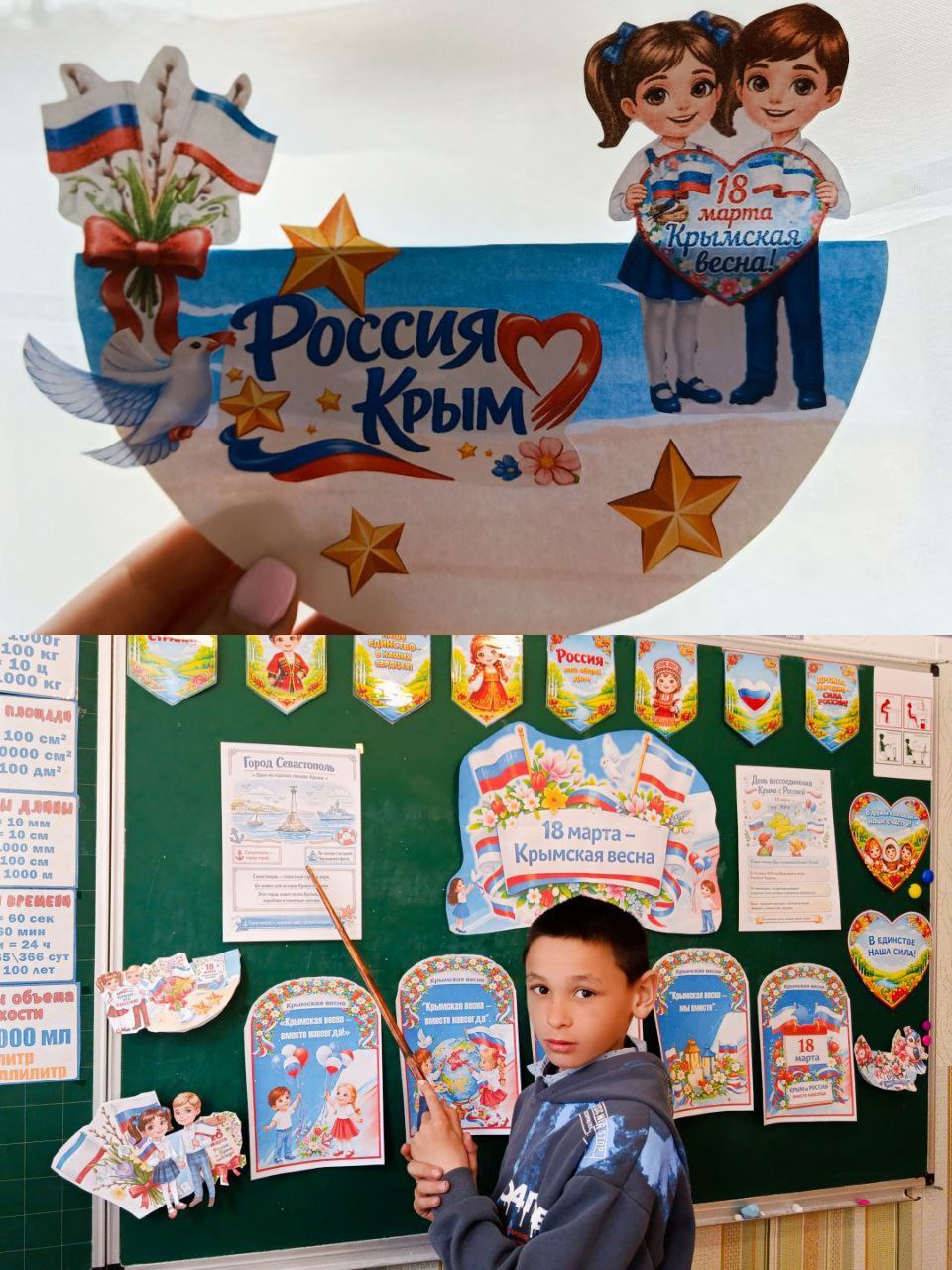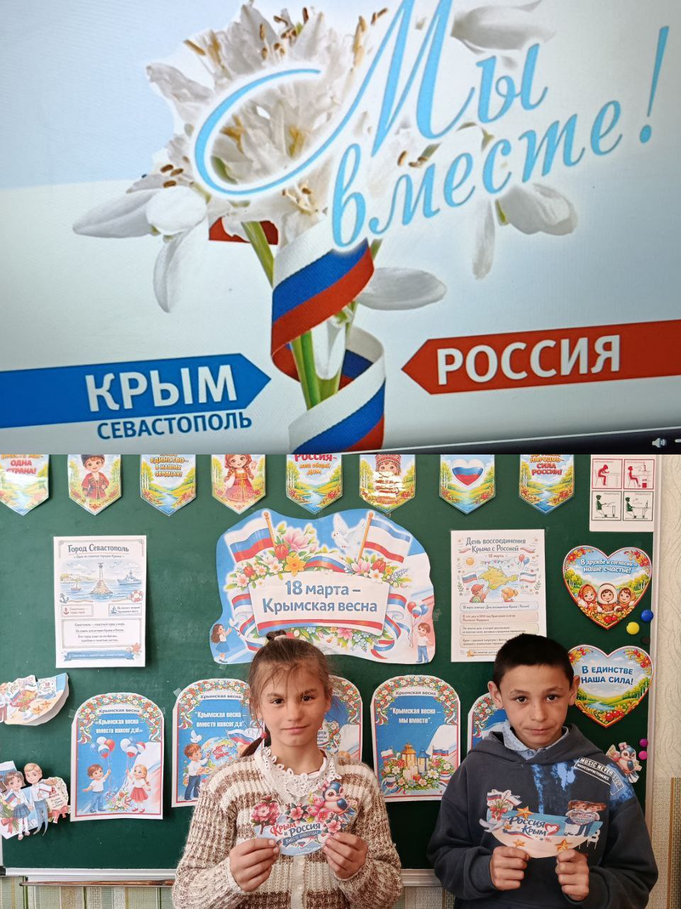 Продолжением темы стали единые уроки «Россия и Крым едины», прошедшие во всех классах. Ребята обсудили культурное и природное богатство Крыма, его роль в истории России. Уроки прошли в формате бесед, просмотров документальных фильмов и чтения стихов. Школьники проявили живой интерес к теме, ещё раз подтверждая, что память об этих событиях живёт в сердцах нового поколения.