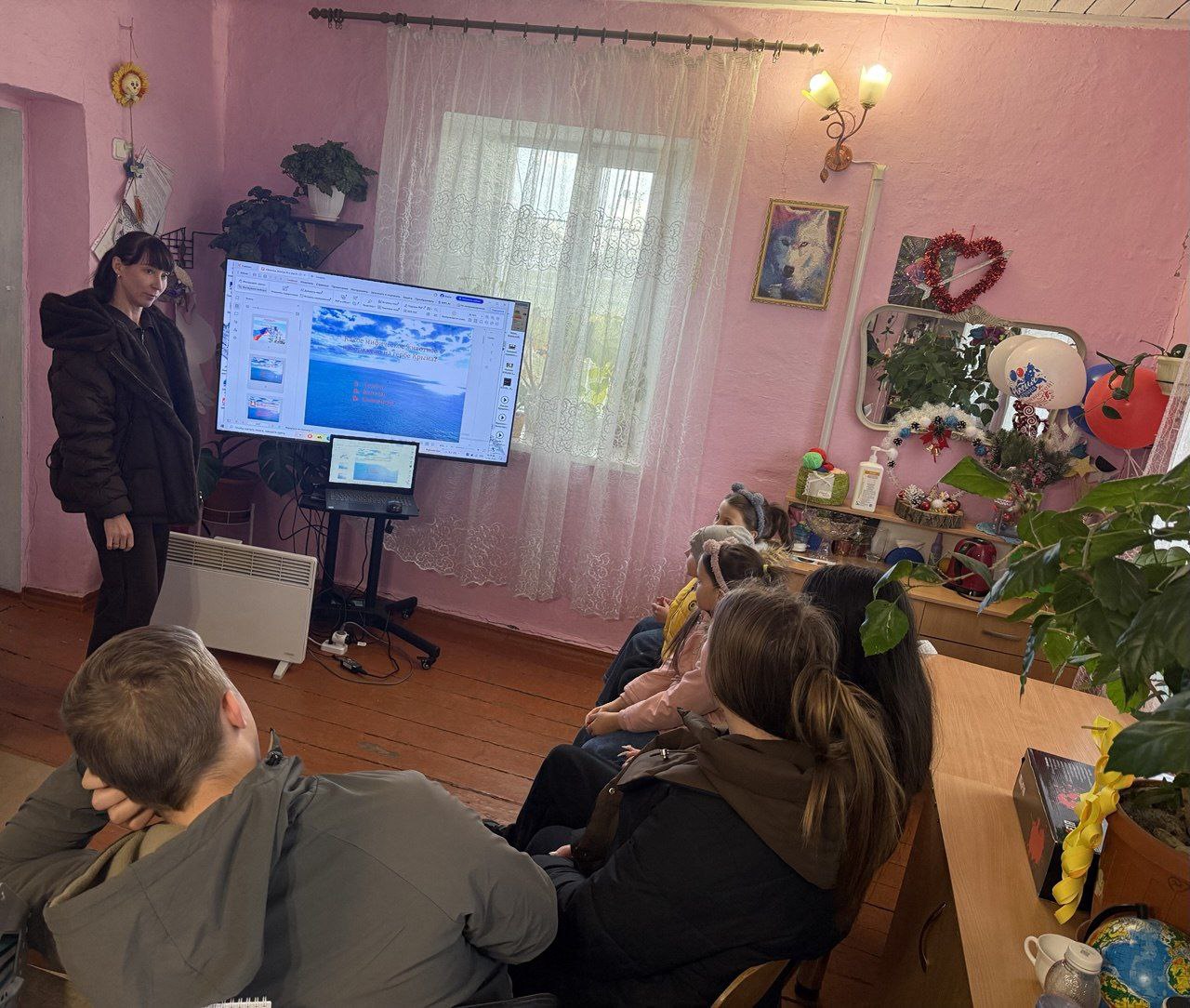 Заведующая сельским клубом подробно рассказала участникам о событиях, приведших к возвращению полуострова в состав России, подчеркивая важность этого исторического момента.