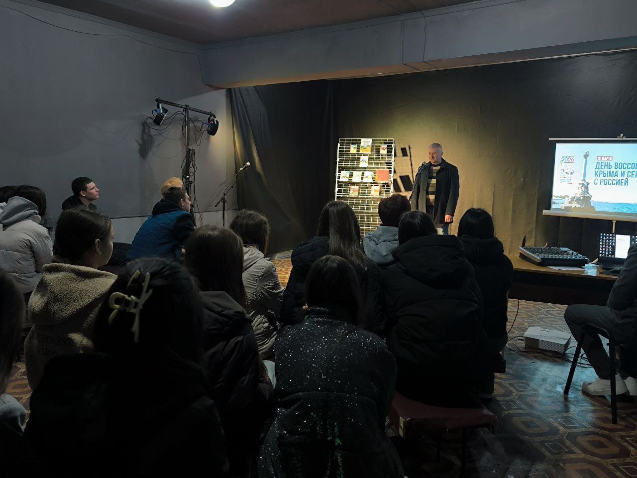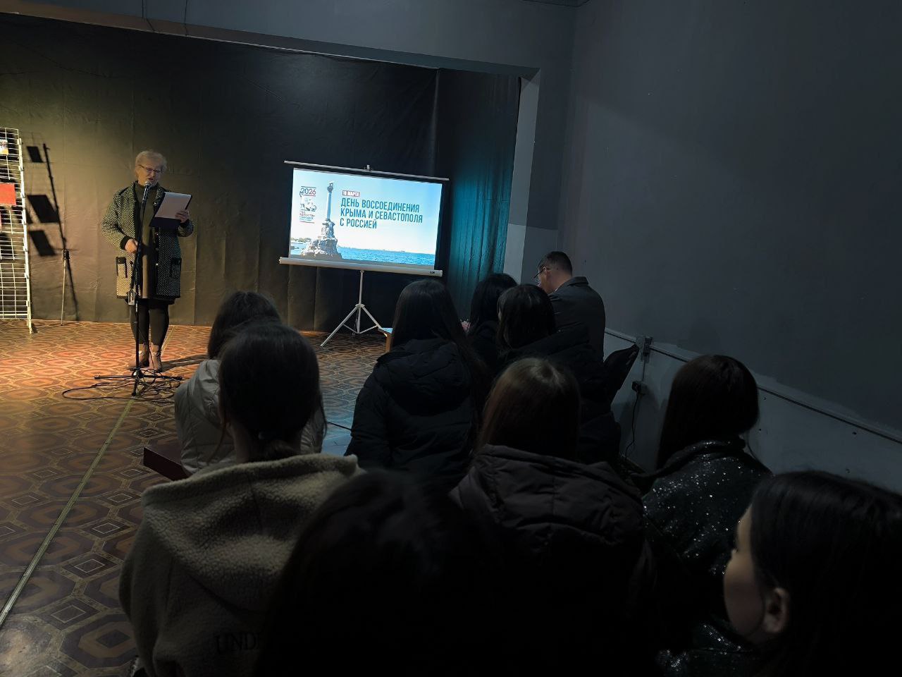 18 марта 2026 года в МКУ "Центр культуры и досуга" состоялся лекционный час «Одна страна — один народ», приуроченный к 12-й годовщине воссоединения Крыма и Севастополя с Российской Федерацией.
