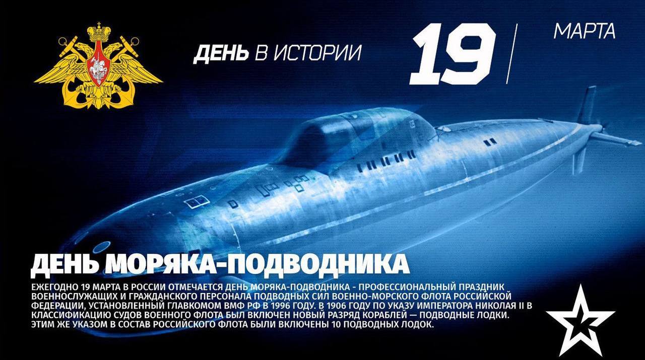 Сегодня Россия чествует тех, для кого подводный флот стал судьбой, кто живет по законам подводного братства, с честью продолжает славные традиции подплава.