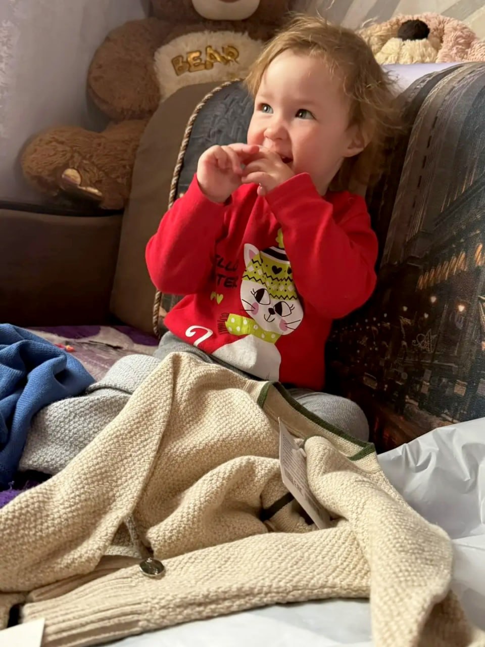 Первые вещи уже вручили. Их получила семья погибшего участника специальной военной операции. Маленькие получатели улыбались, а свитера, говорят, греют не хуже материнских рук.
