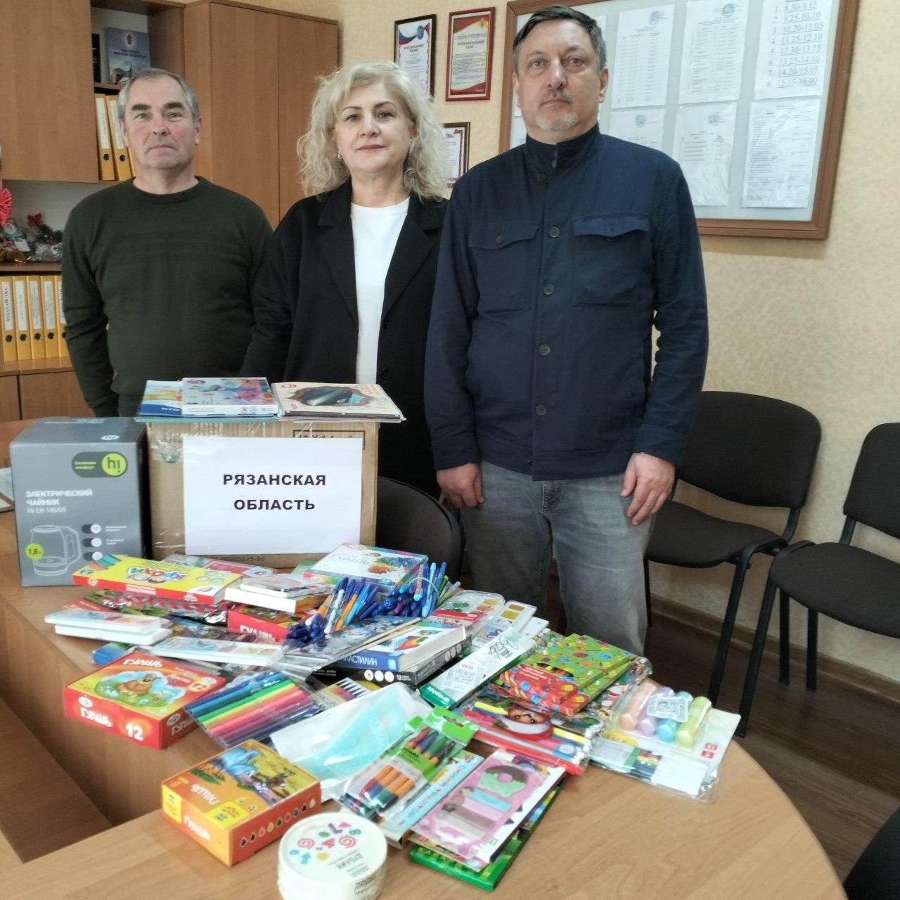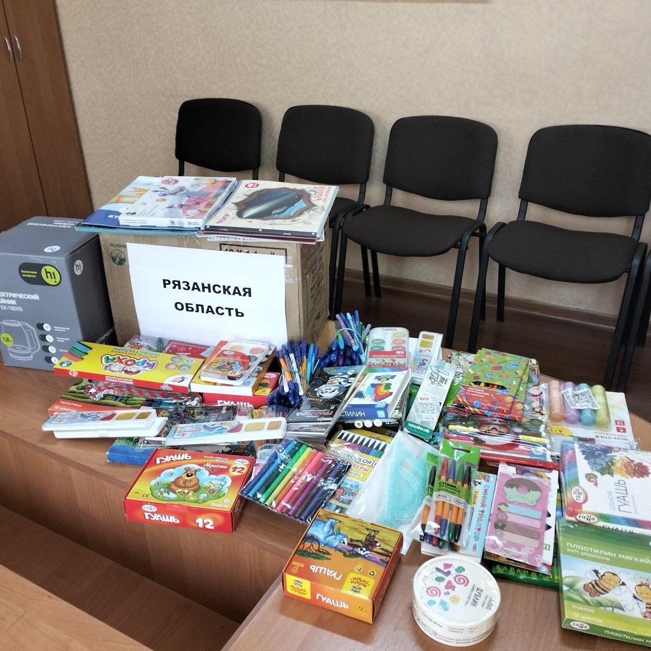 В рамках оказания помощи школе рязанцы передали канцелярские товары и материалы для развития творческих способностей: гуашь, фломастеры, пластилин, цветные карандаши, акварель, а также наборы для творчества.