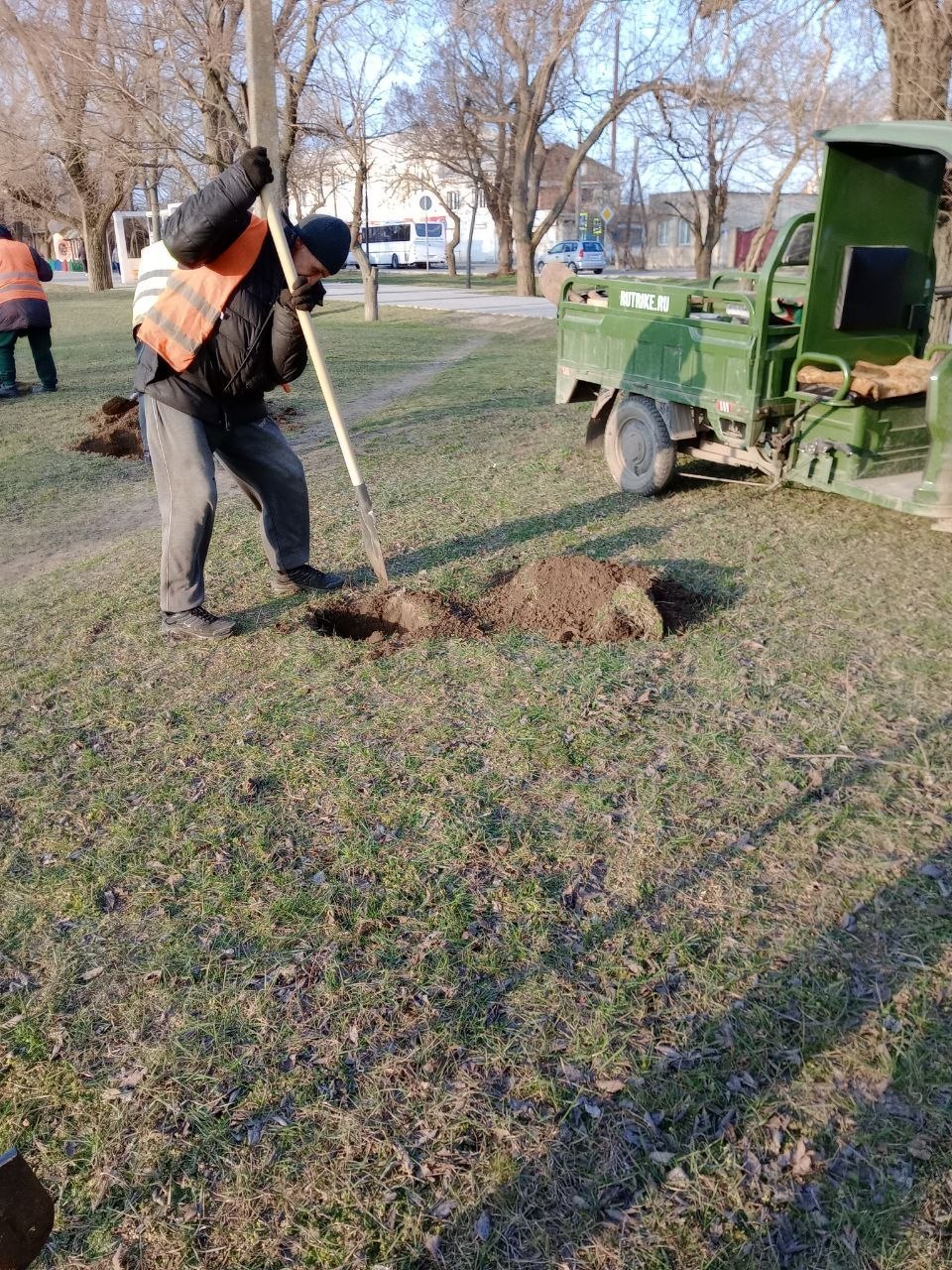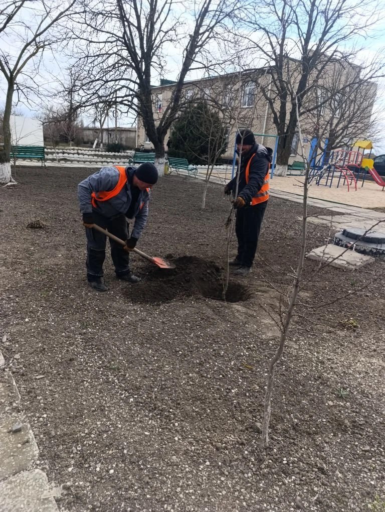 Осуществлена высадка саженцев деревьев.