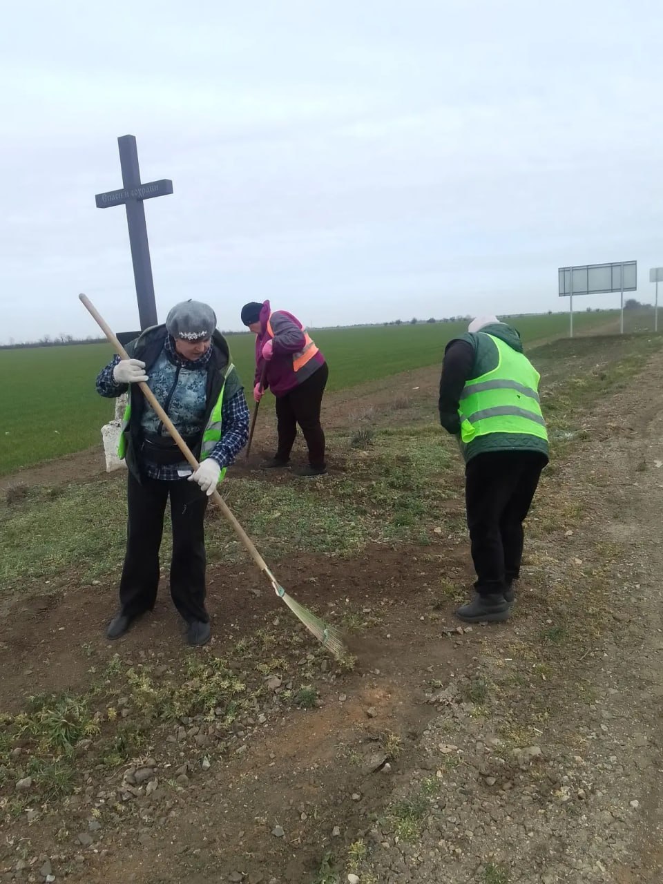 Проведена прополка территории при въезде в посёлок.