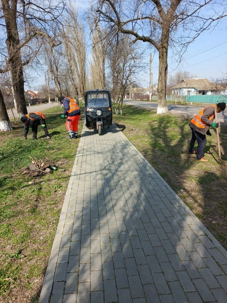 23 марта работники МКУ «Горжилстрой» провели плановые работы по приведению в порядок общественных территорий в населённых пунктах Генического муниципального округа.
