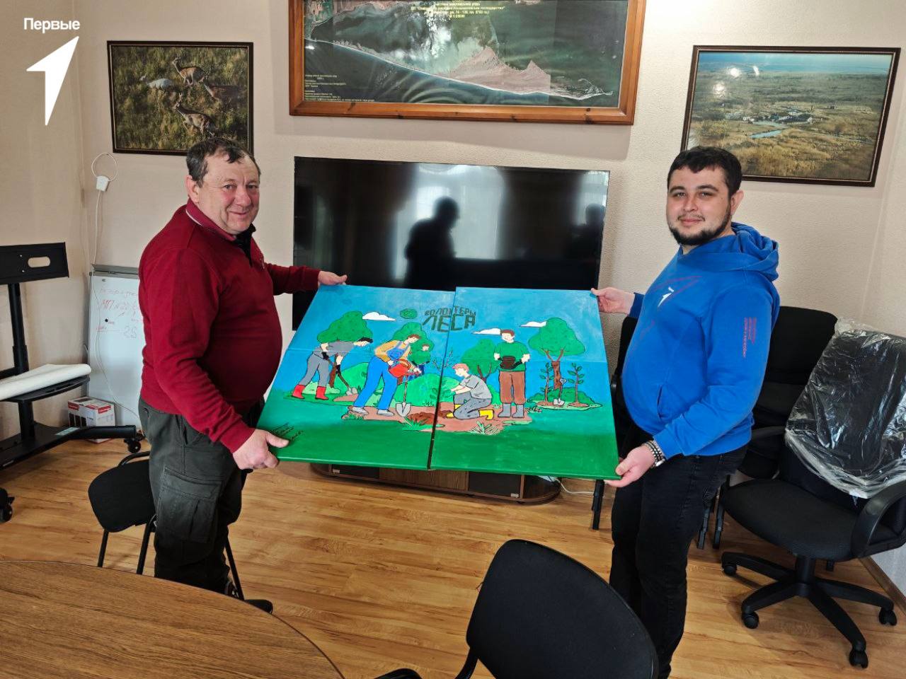 Активисты Движения Первых Таврийской школы подготовили творческий подарок для сотрудников Скадовского лесхоза — модульную картину, выполненную своими руками.