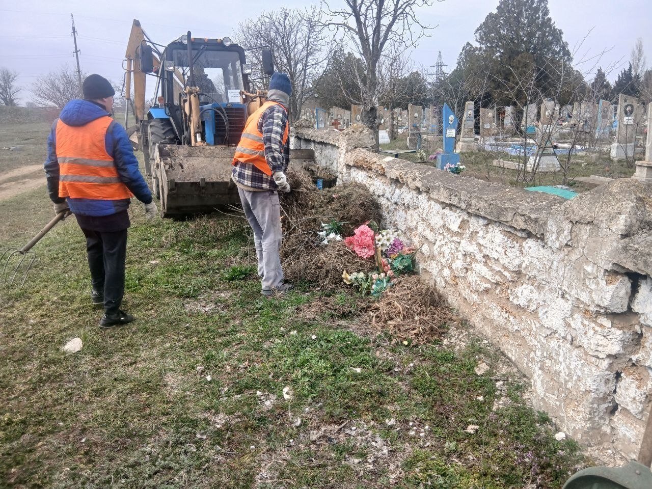 Сотрудники филиала №1 муниципального бюджетного учреждения "Управление жилищно-коммунального хозяйства и благоустройства Великолепетихского муниципального округа" провели уборку кладбищ и прилегающих территорий в пгт. Великая Лепетиха. Мероприятие состоялось в рамках месячника благоустройства, объявленного губернатором Херсонской области.