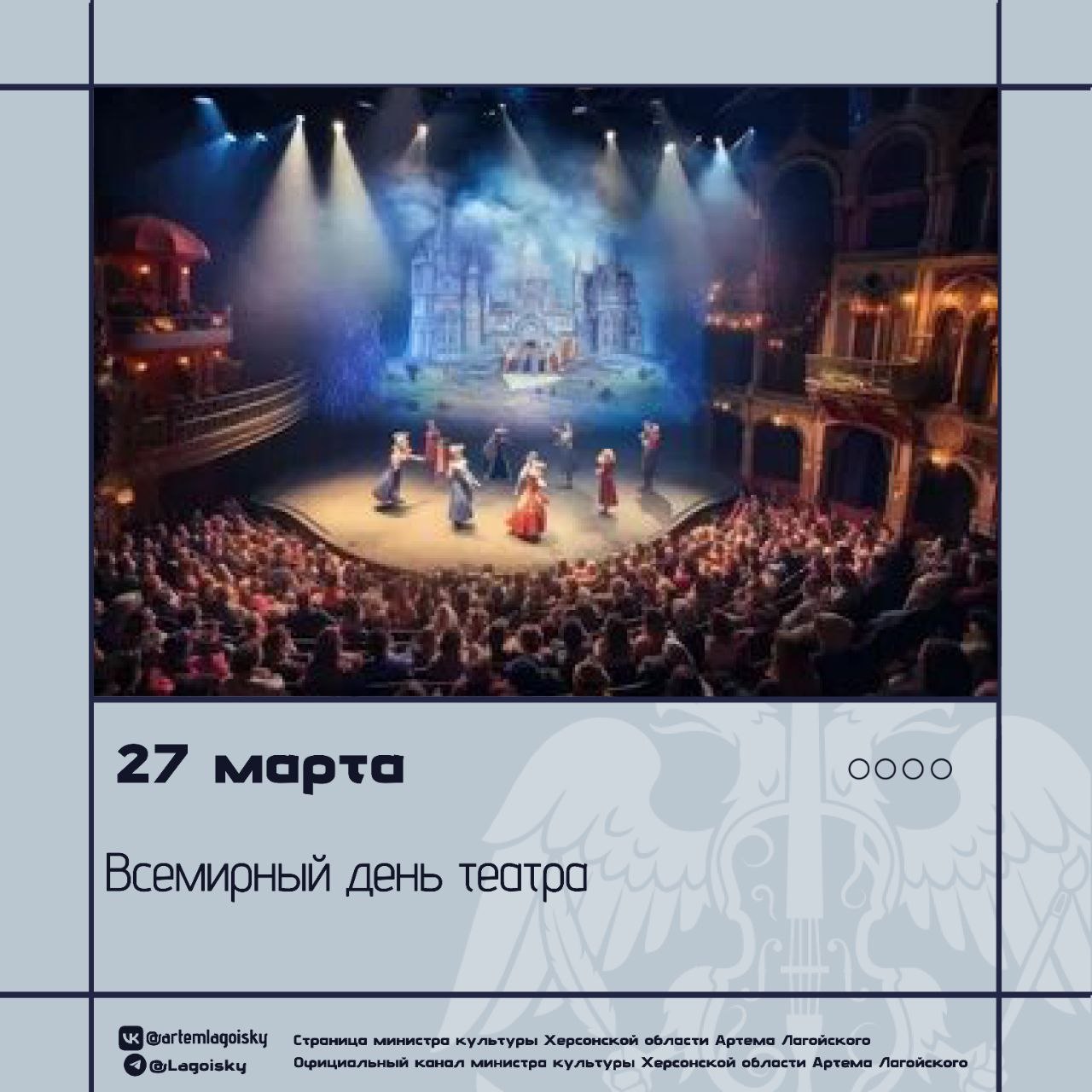 Этот праздник объединяет миллионы людей по всей планете: тех, кто выходит на сцену, и тех, кто замирает в зрительном зале. Театр — древнейшее искусство, которое и в 2026 году остаётся живым, честным и необходимым.
