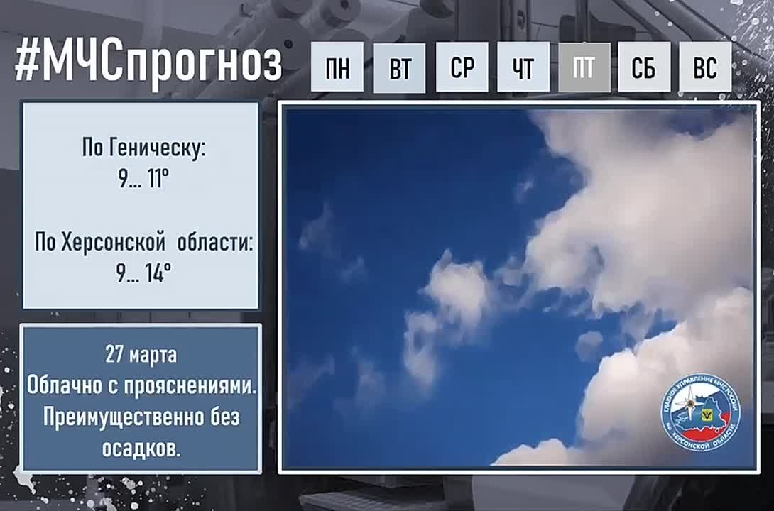 Чрезвычайный прогноз по Херсонской области на 27 марта