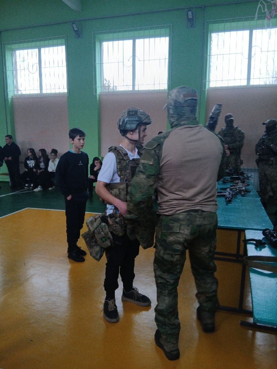 В ответ на поздравления представители Росгвардии провели для школьников практическое занятие. В рамках мероприятия они показали детям свою амуницию, рассказали о специальных средствах и оружии, используемых в службе. Это позволило учащимся лучше понять особенности работы сотрудников Росгвардии, а также повысить уровень их информированности о служебной деятельности правоохранителей.