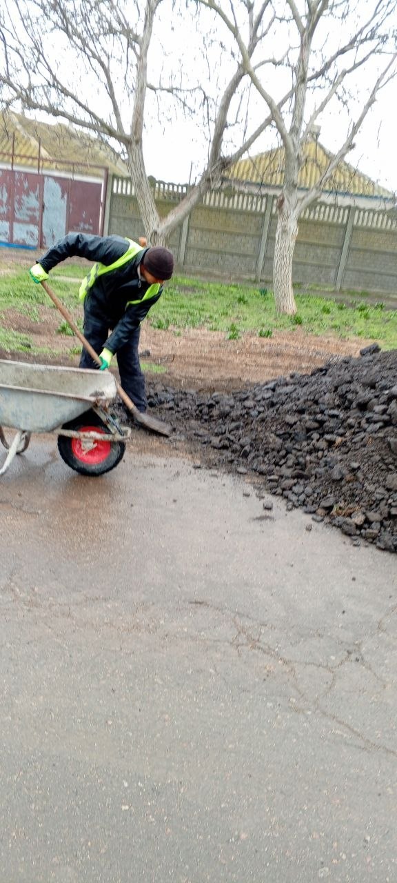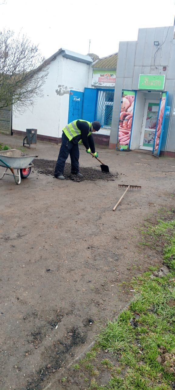 Благоустройство территории у магазина «Аист» – выполнено силами МКУ «Горжилстрой» при поддержке Генического ДЭУ, который обеспечил доставку асфальтогранулята.
