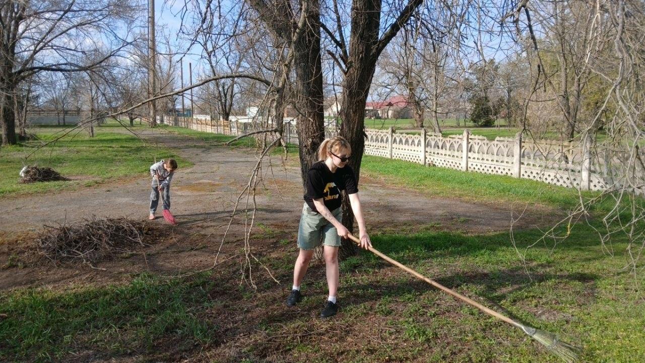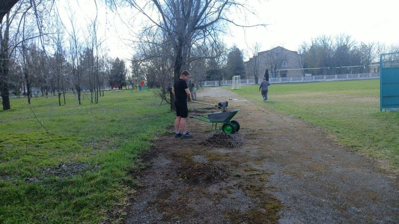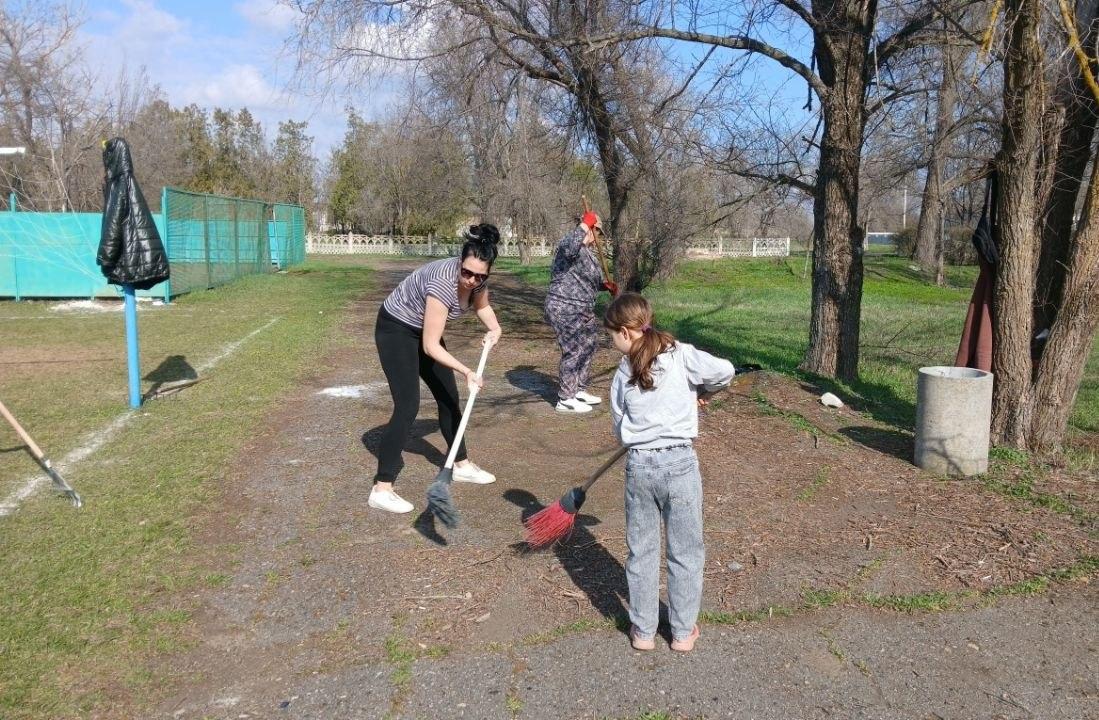 Работники культуры села Дмитровка Каховского округа провели весенний субботник на стадионе
